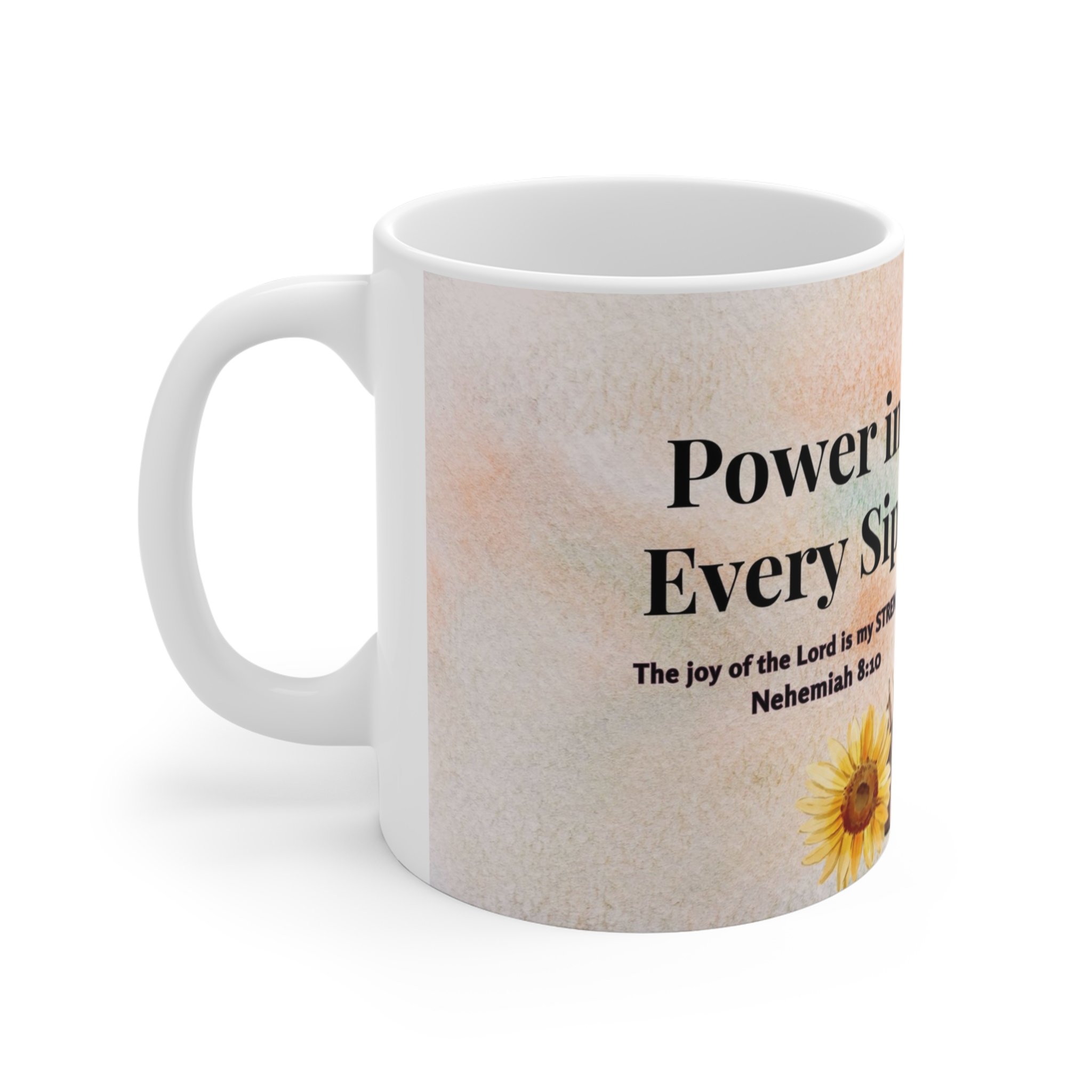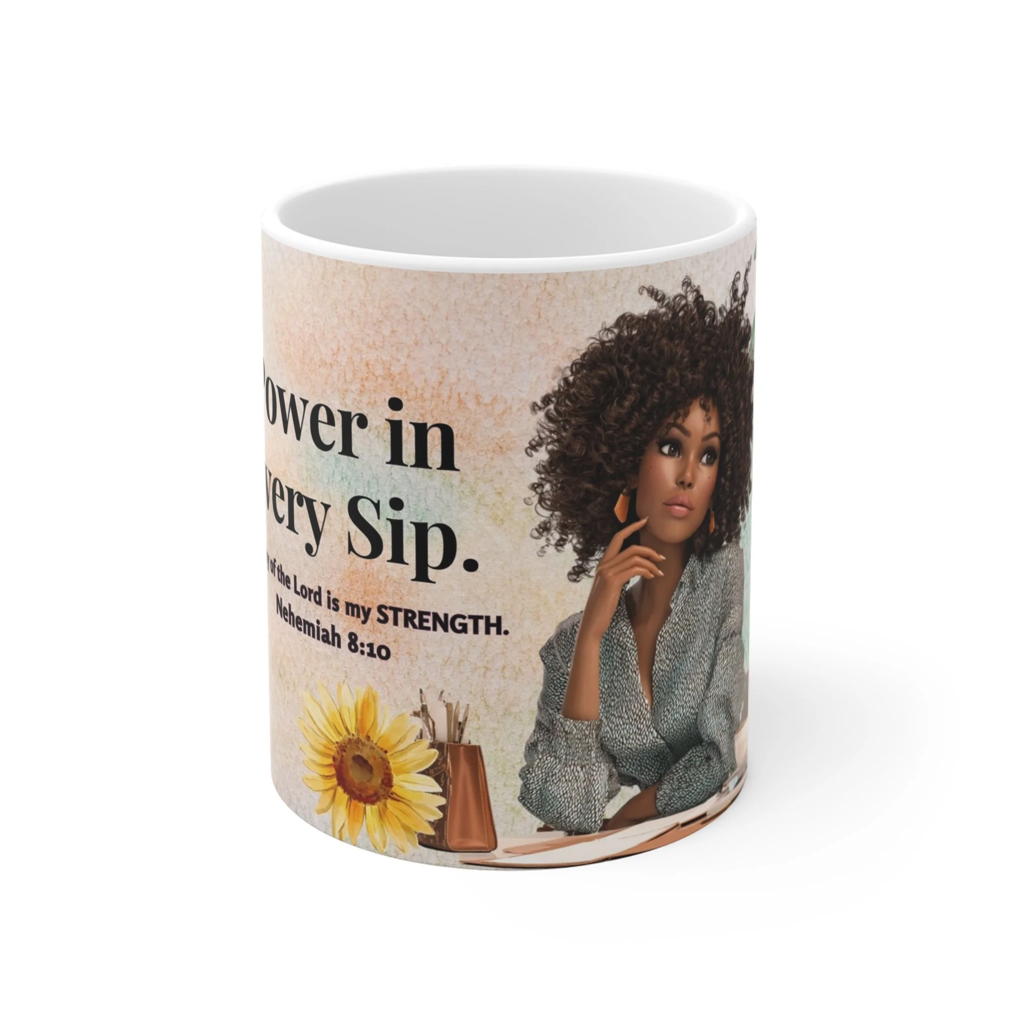 Start your day strengthened and centered. This Power in Every Sip mug combines elegance, inspiration, and faith with a beautiful illustration that radiates confidence and grace. Featuring the Scripture “The joy of the Lord is my strength.” — Nehemiah 8:10, it’s the perfect reminder that your power comes from within — and from above.